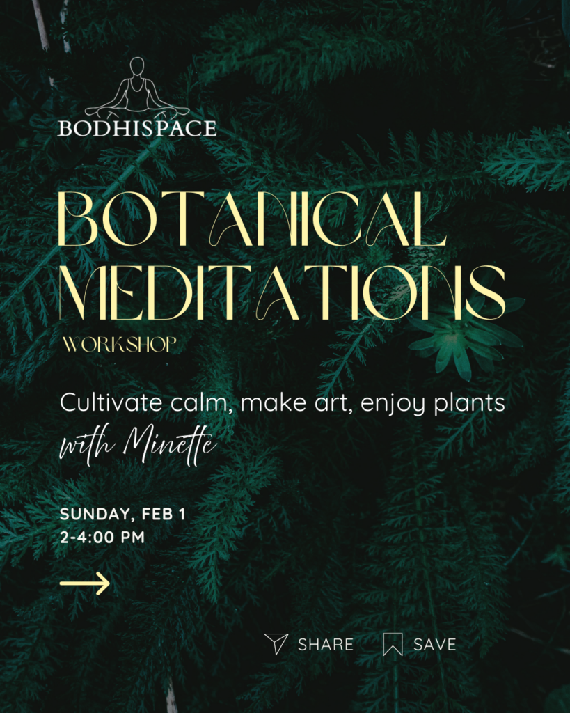 Bodhispace invites you to attend a workshop with @minettelm on Sunday, February 1st, that merges meditation, art, and nature to bring about calm and a closer connection to the more-than human world.